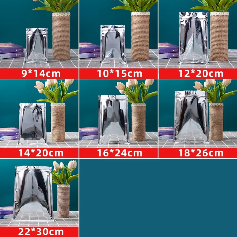 1000Pcs Aluminum Foil Ziplock Bags Food Grade / Silver Aluminized Mylar Self Sealing Pouch T-shirt Package Bag Zipper Reopenable