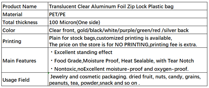 100pcs Heat Resistance Plastic Sealable Aluminum Foil Stand Up Food Goods Custom Tea Packaging Closure Mylar Storage Bags