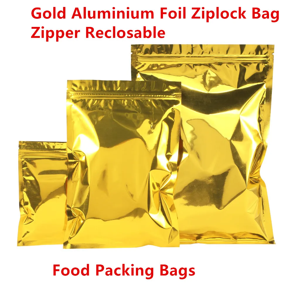 100pcs One Side Transparent Gold Aluminum Foil Zip Lock Bags - Food Grade Zipper Reusable Plastic Pouches Christmas Gift Package