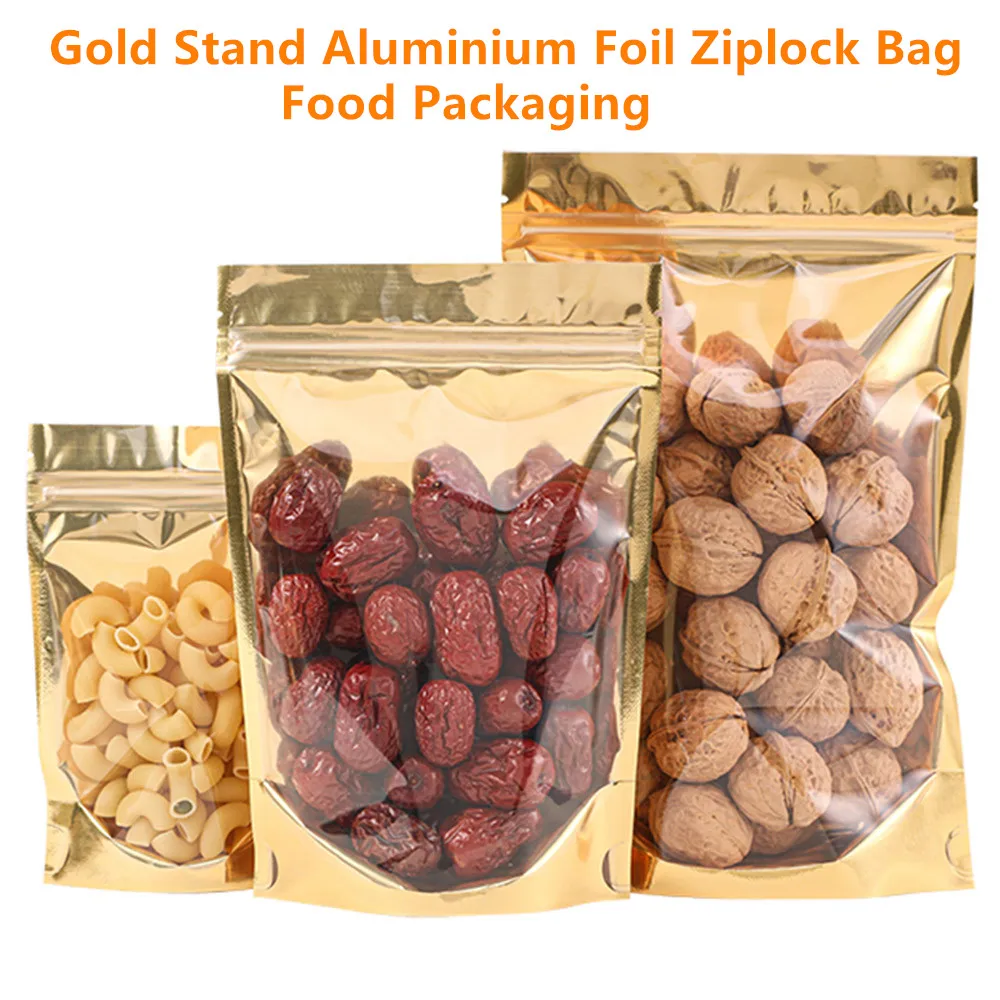 Gold Aluminum Foil Zip Lock Bag with Clear Front