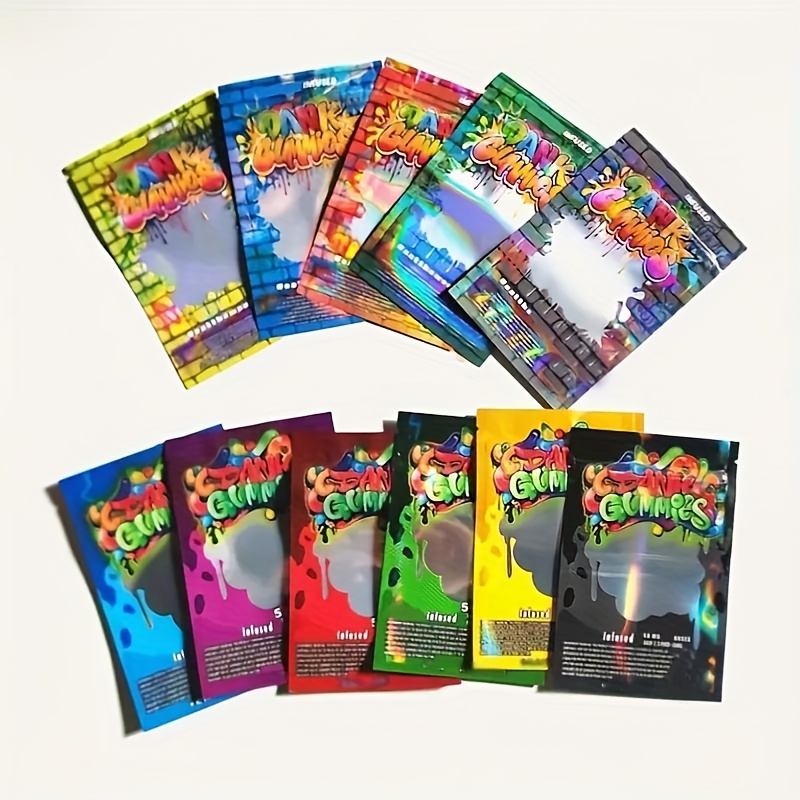 100pcs Polyester Film Bags -3.5g Mylar Bags, Gift Bags, Storage Bags, Plastic Bags, Reusable Zipper Bags, Suitable for Gift Packaging, Candy And Snack Storage And Festival Gift Packaging, Perfect for Event Parties, 10 Random Styles Mixed -D4