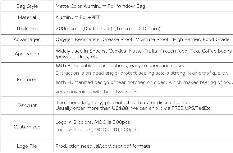 50PCS Stand-up Matte Aluminum Foil Frosted Window Ziplock Bag DIY Matcha Coffee Powder Snack Sugar Beans Pet Food Pack Pouches