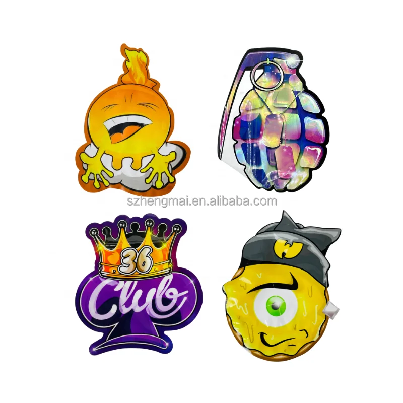 ITEM Custom Printed Packaging New Baggies 3.5g Unique Special Die Cut Shaped Mylar Bags Resealable Zipper Pack Mylar Bags Holographic